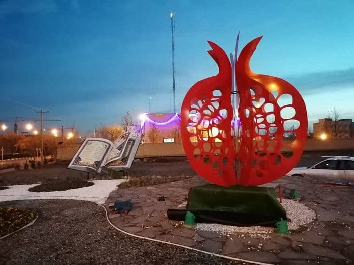 به مناسبت شب یلدا المان کتاب حافظ و انار در گلبهار نصب شد