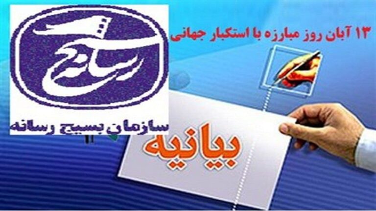 بیانیه سازمان بسیج رسانه خراسان رضوی به مناسبت ۱۳ آبان؛ ۱۳ آبان از ایام الله انقلاب اسلامی یادآور مبارزات دانشجویی علیه دستگاه استکباری آمریکا است