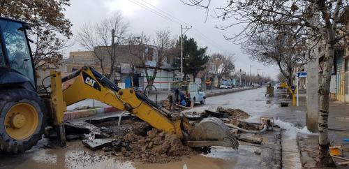 تردد وسایط نقلیه سنگین باعث ترکیدگی لوله ۲۵۰ چدن کمربندی مدرس شهر قوچان شد