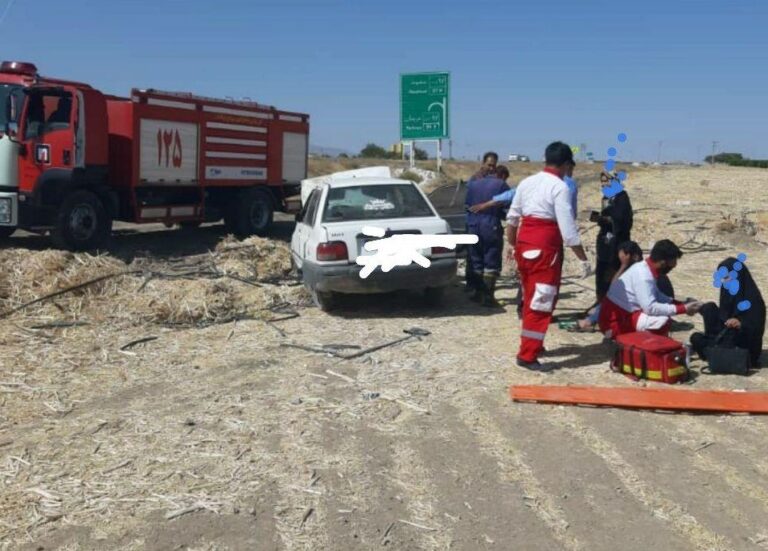خواب آلودگی راننده پراید حادثه ساز شد/ مصدومیت ۳ نفر در حادثه واژگونی خودرو پراید در محور فریمان به مشهد
