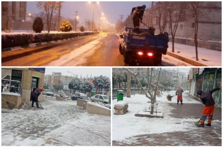 تلاش نیروهای خدمات شهری، عملیات نمکپاشی در معابر و تنظیف پیاده روها در خیابانهای