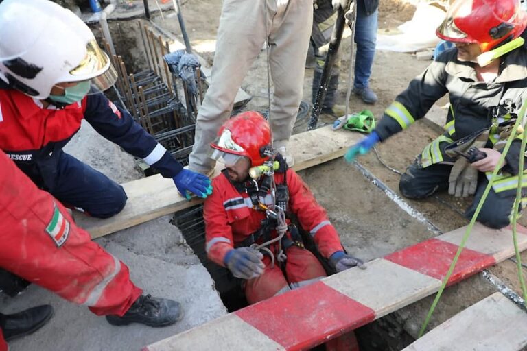 مقنی در عمق چاه، یک کارگاه ساختمانی، ستاد فرماندهی بلافاصله گروههای امداد و نجات