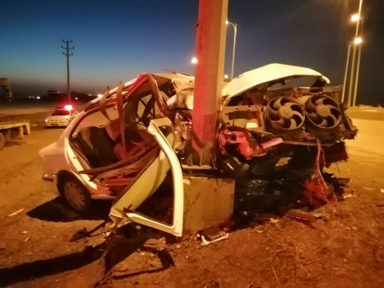 انحراف از جاده با گارد ریل و ستون کنار جاده برخورد داشت و باعث محبوس شدن یکی از