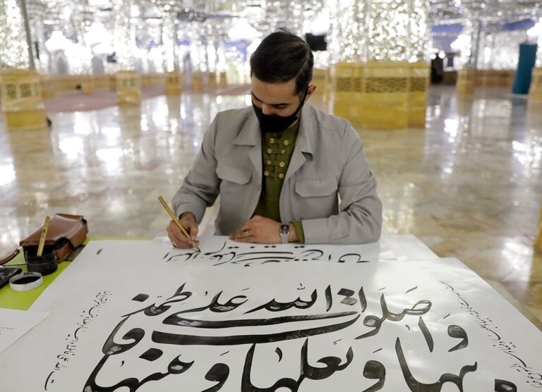 کتابت آیات وحی با حضور ۵۰ هنرمند در حرم مطهر رضوی