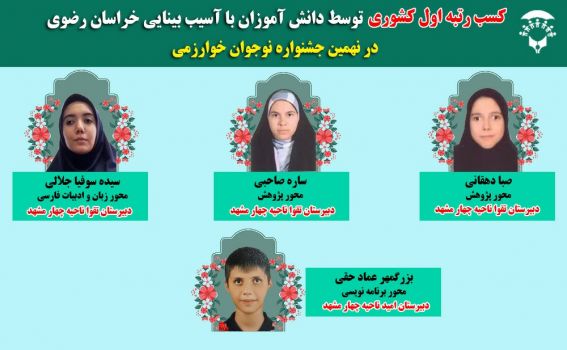 کسب سه مقام کشوری توسط دانش آموزان آسیب دیده بینایی استان در جشنواره نوجوان خوارزمی