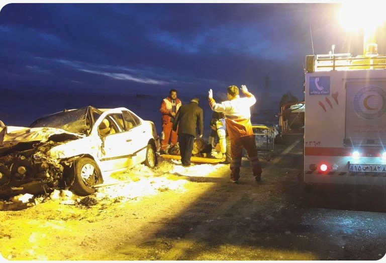 تصادف پژو ۴۰۵ و سمند در محل پیچ محسنآباد توسط نجات گران هلالاحمر شهرستان تایباد،